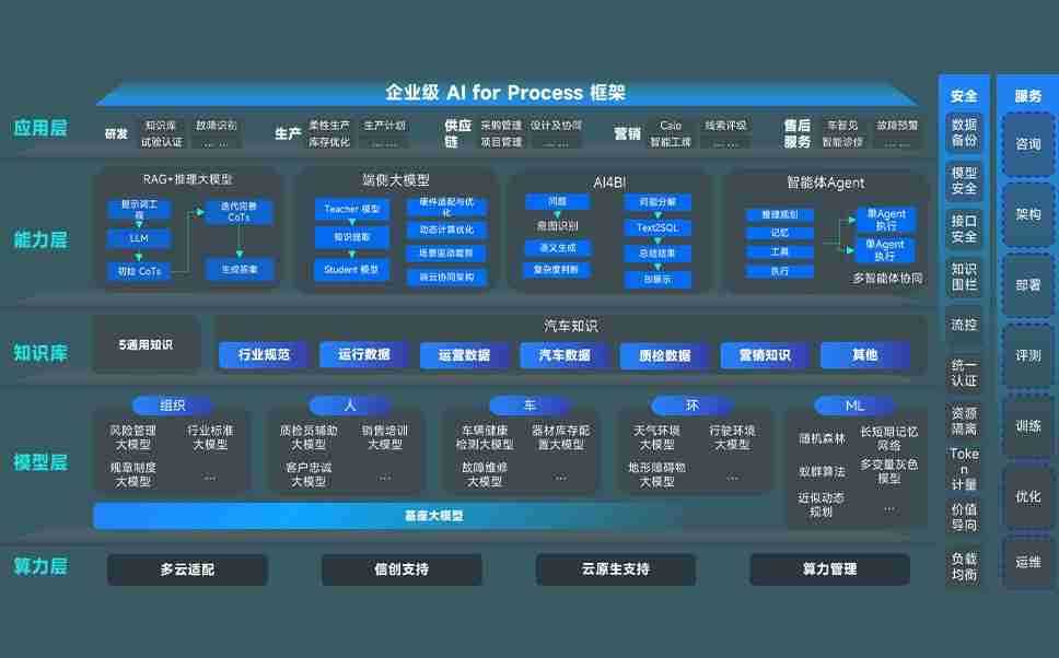 端到端的一站式AI工作空间深度融合了从企业战略规划到日常经营的全流程业务板块,,,定向解决车企内部领域多、、、部门多、、、、链条长、、、场景碎片化等难题,,支持车企快速构建以AI为核心的生产力写作体系,,实现任务执行与AI能力的无缝集成与交互
